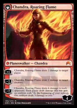 Now let’s check out what Chandra, Fire of Kaladesh transforms into, the great Chandra, Roaring Flame!