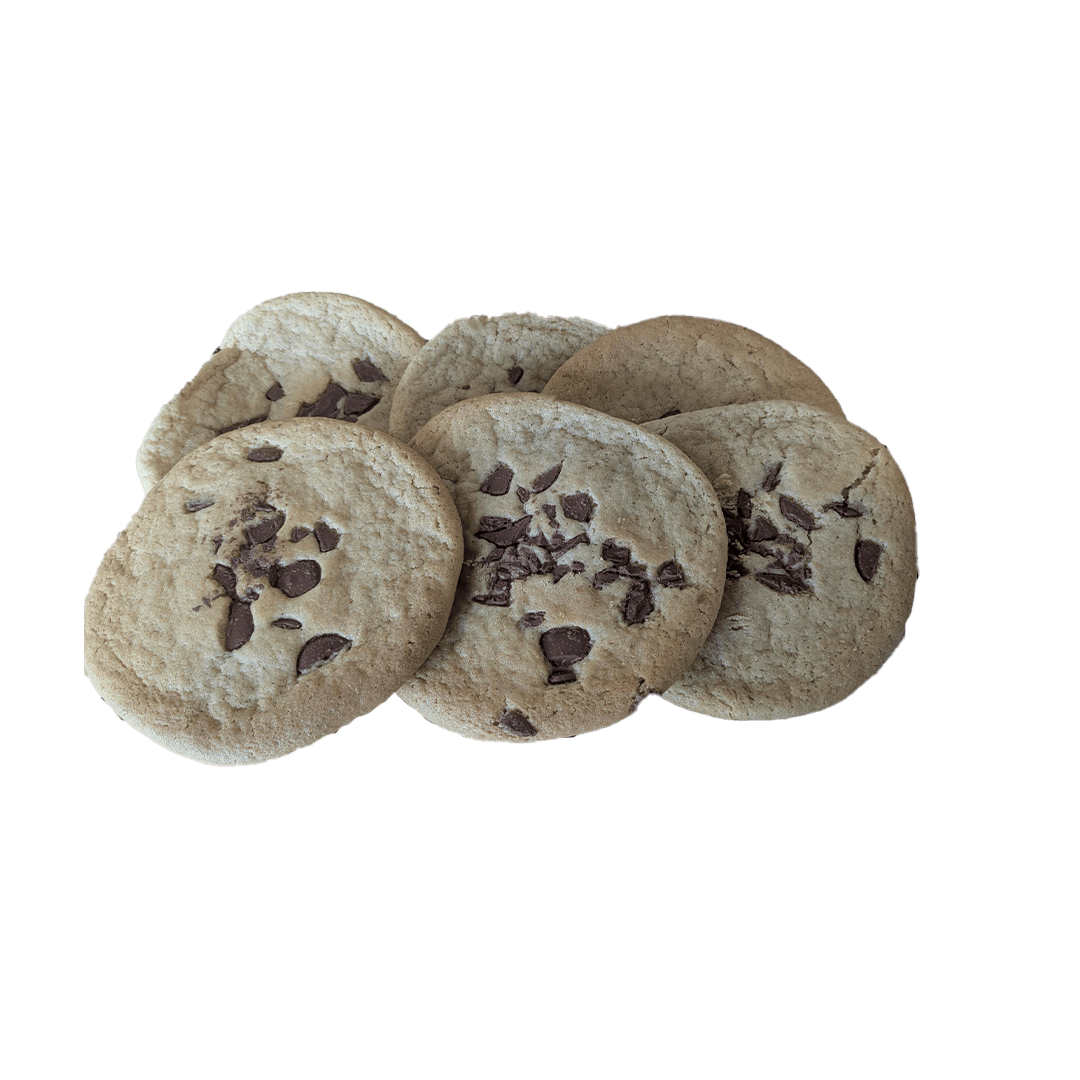 Delicious peaks and valleys of chocolate covered in a sweet brown sugar cookie, the classic chocolate chunk.